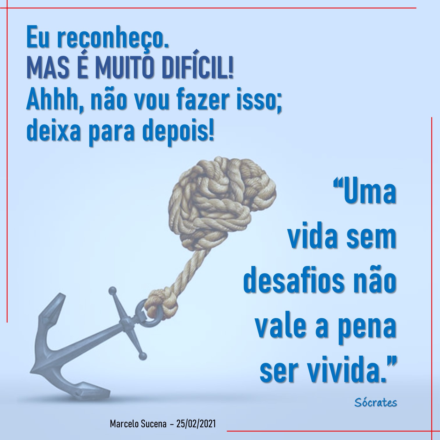 Mas quantos têm DISCIPLINA para ir ao fim, até atingir os objetivos? Cada um tem um universo de potencialidades, mas outro tanto de barreiras, muitas dessas autocriadas. Nós nos amarramos!