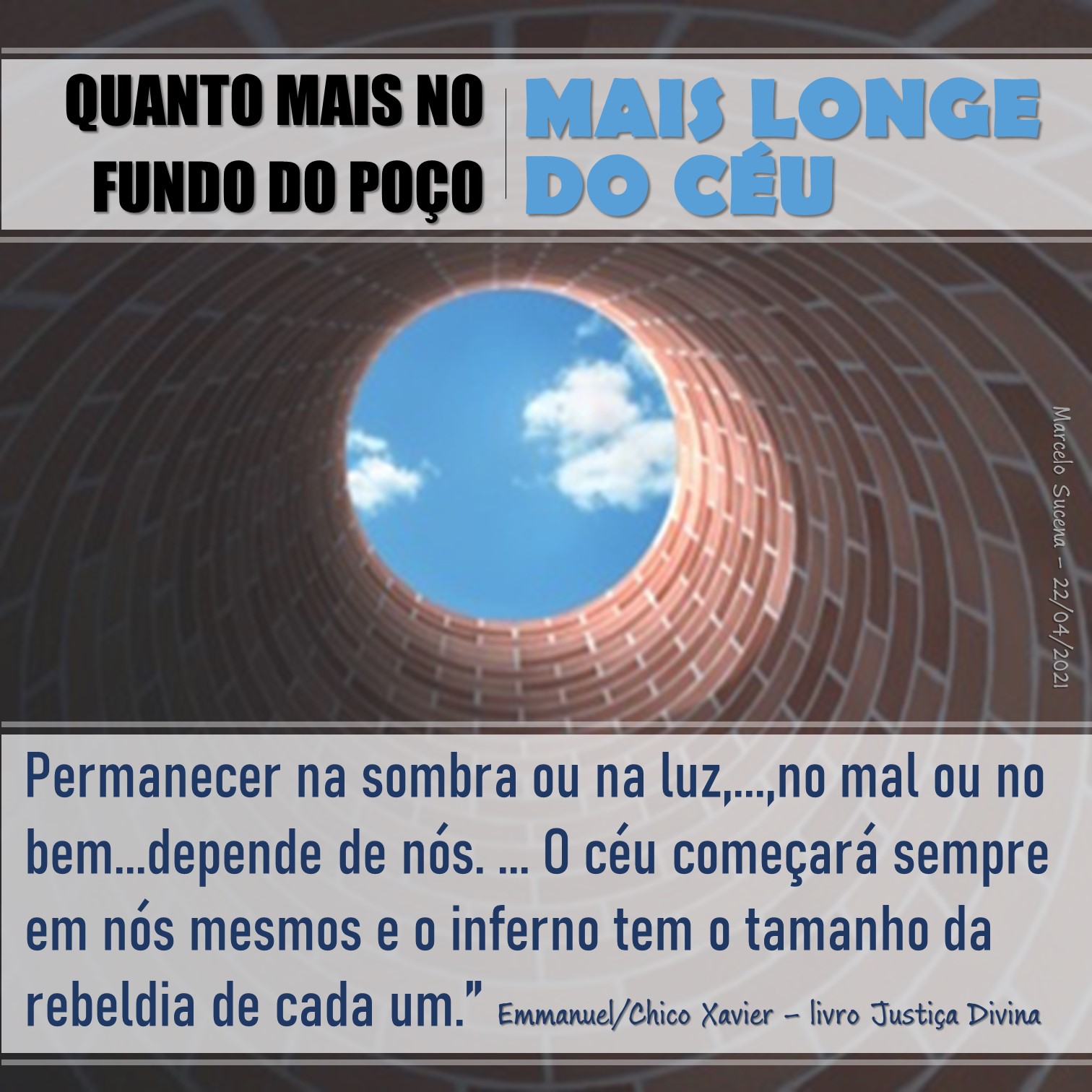 Mas, temos nossa cota de participação nesse futuro. Façamos o melhor agora, fiquemos atentos às oportunidades para a prática do bem. O livre-arbítrio é possível, mas vem carreado da responsabilidade individual.
